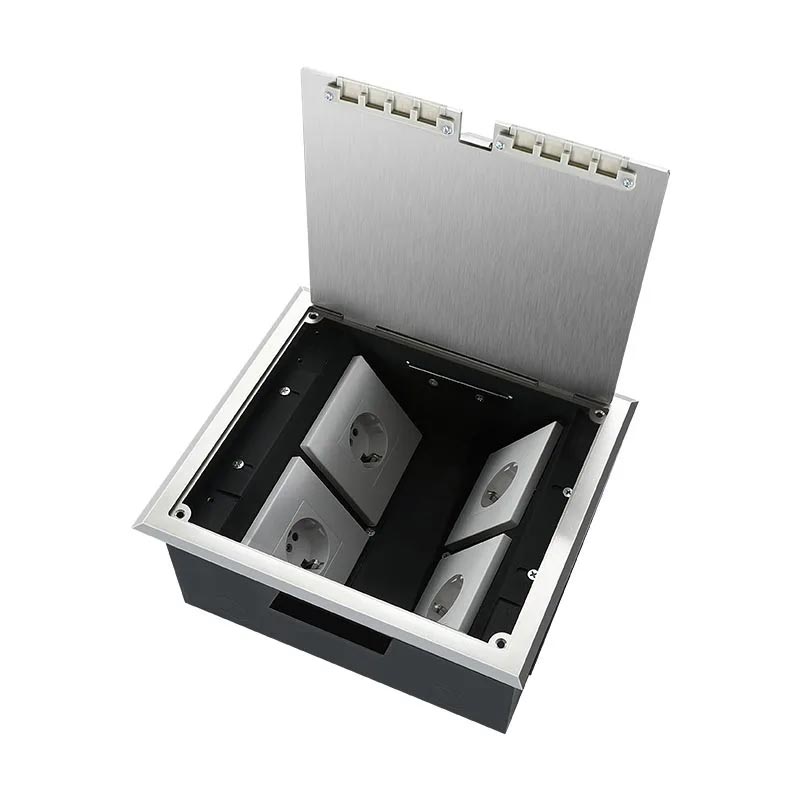 एंबेडेड हिडन 250 ओपन टाइप साइड इंसर्शन फ्लोर सॉकेट, जिसे विविध वातावरणों में कार्यक्षमता, सुरक्षा और सौंदर्यशास्त्र में सामंजस्य बनाने के लिए डिज़ाइन किया गया है।